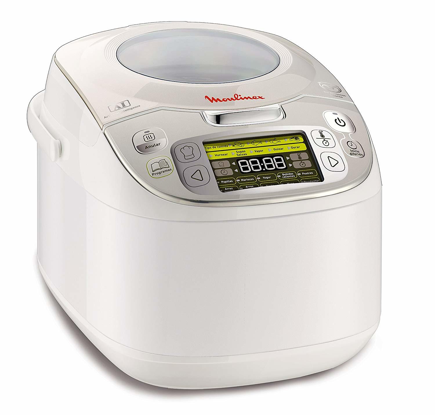 Con esta olla eléctrica podremos configurar los tiempos de cocción, la temperatura y hasta 45 programas diferentes, lo que nos permite crear gran variedad de recetas y la posibilidad de personalizarlas a nuestro gusto. Además gracias a la tecnología Fuzzy Logic, la Moulinex maxichef calcula de forma automática los parámetros de cocción, por lo que tendremos garantizada siempre una cocción óptima de nuestras recetas.
